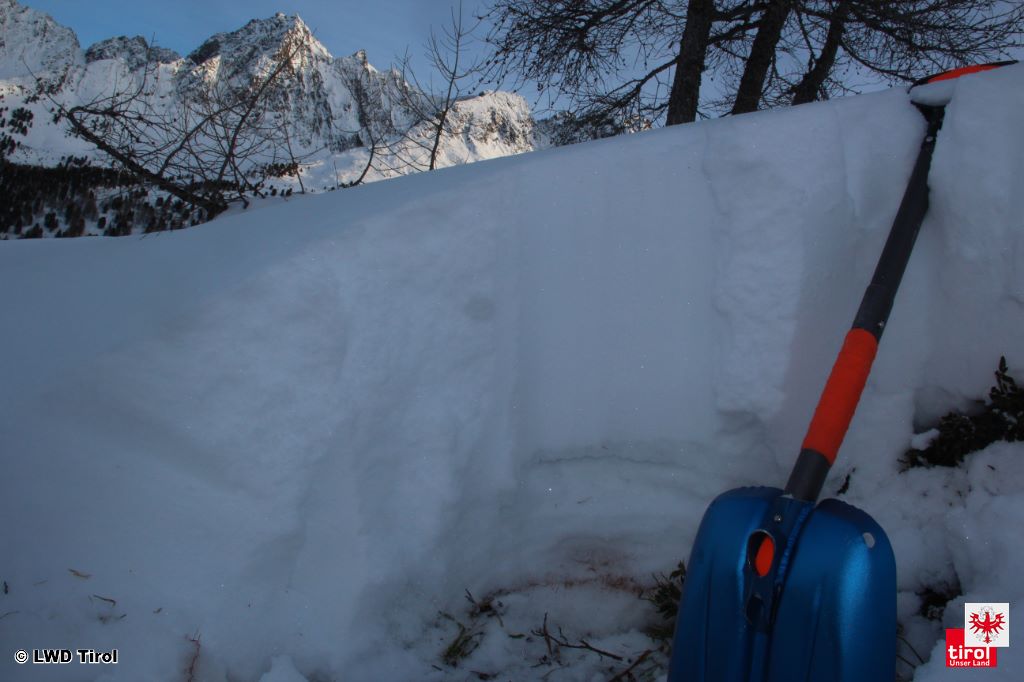 On Friday 7.12 in far-reaching parts of Tirol, an intermediate high generated very pleasant weather conditions and mild temperatures. The zero-degree level during the day was at nearly 3000 m. The snow situation in widespread areas of Tirol was still rather meagre at that juncture. The snowpack, where there was one, was heavily wind-impacted and erratic.